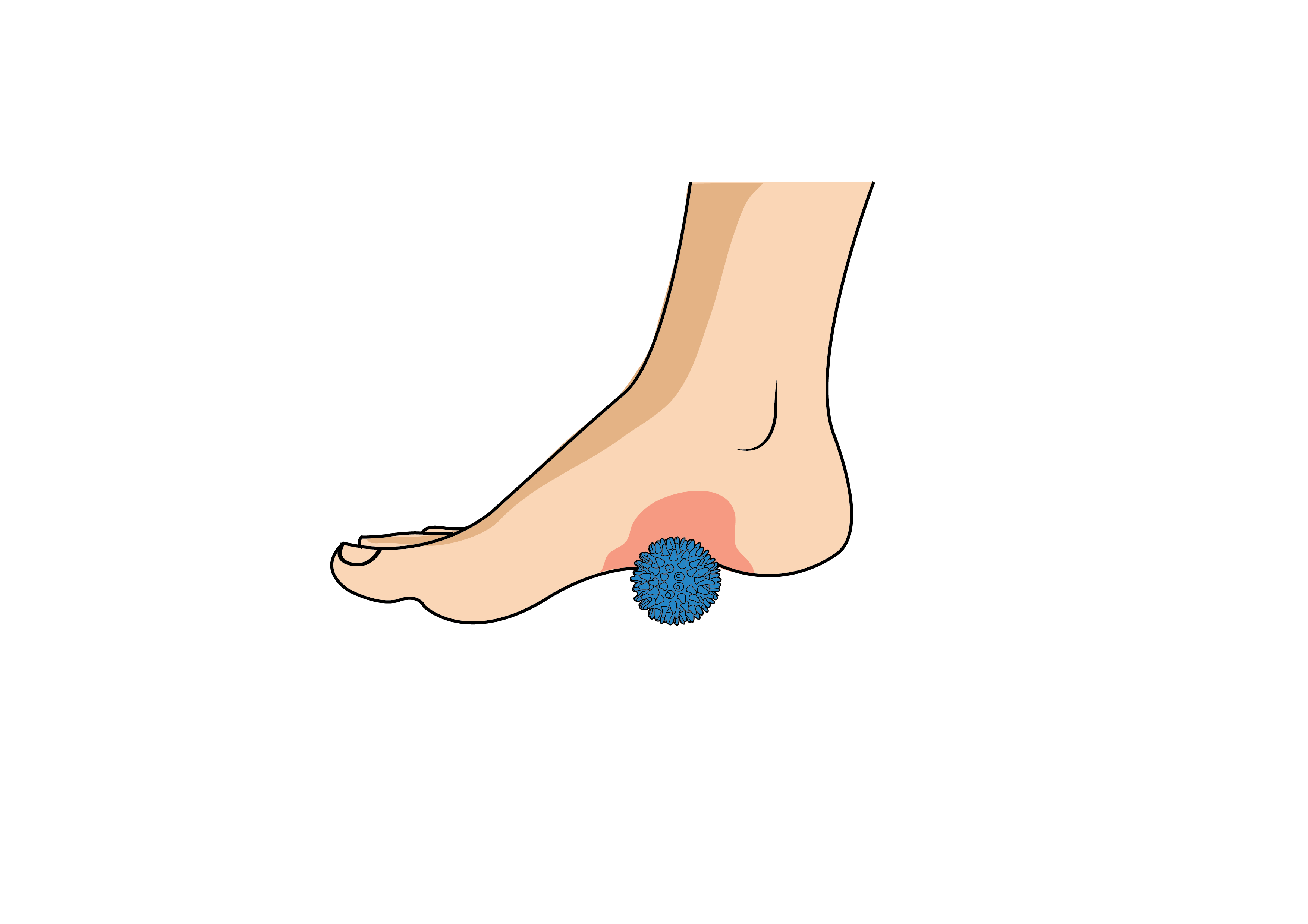 Start with the massage ball under the arch of your foot. Roll back and forth while pushing into ground with enough pressure to provide yourself with immediate relief from tight arches. The lacrosse massage ball (or spikey ball) even helps people who suffer from plantar fasciitis. Make sure you use it for at least 5 minutes daily and apply tons of pressure.